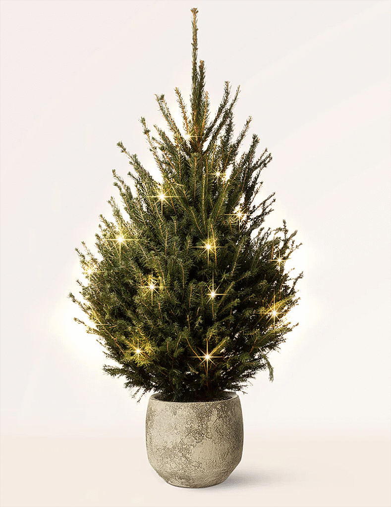 El Abeto o Picea (Picea abies): Es el árbol de las películas, con ramas escalonadas y agujas rígidas. Es el más elegante para decorar porque sus “pisos” permiten que los adornos cuelguen con gracia. Es el que más sufre el calor. Requiere un ambiente fresco y vigilancia constante.