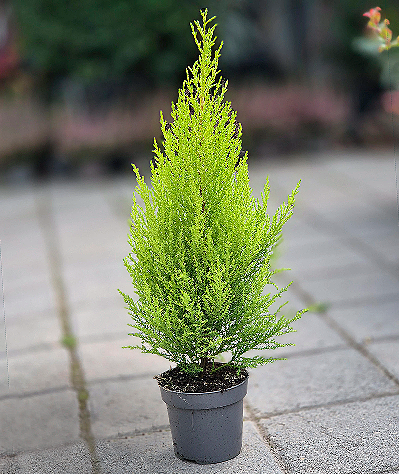 Pino Limón (Cupressus macrocarpa ‘Goldcrest’): El favorito de los departamentos modernos. Su color verde lima flúor y su aroma cítrico al tacto lo hacen único. Funciona perfecto en macetas de diseño y espacios reducidos, aportando luz propia.
