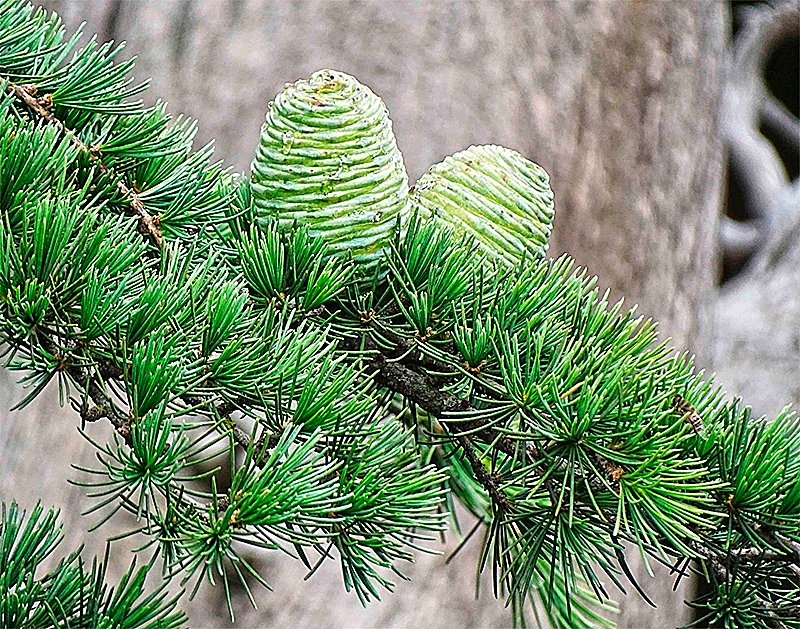 El Cedro (Cedrus deodara): De porte “llorón”, con ramas flexibles y agujas azuladas y suaves. Rompe con la estructura rígida triangular y aporta un aire rústico y etéreo.