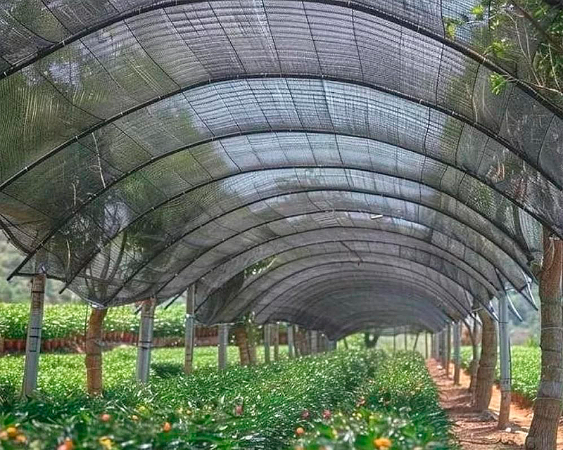 Su función no es “tapar” el sol, sino controlarlo. La malla filtra la intensidad lumínica, elimina los picos de radiación nociva del mediodía y difumina la luz. El resultado es un microclima donde la iluminación es uniforme, eliminando el estrés del sol directo.